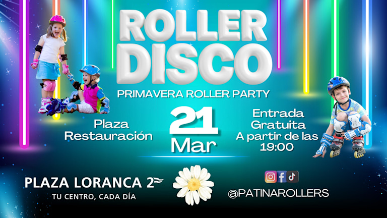 Ven a disfrutar de nuestra Primavera Roller Party, un evento pensado para pequeños y mayores donde podrás patinar, bailar y celebrar la llegada del buen tiempo como se merece.